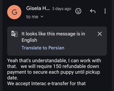 She promised for a refundable deposit, and she disappeared when I canceled my trip for pick up.