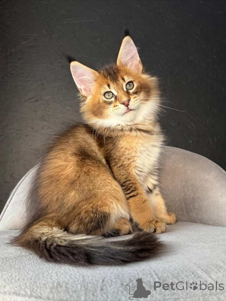Maine Coon is quite a large, strong and hardy breed. His varied color, thick and fluffy wool makes him stand out against other feline animals.