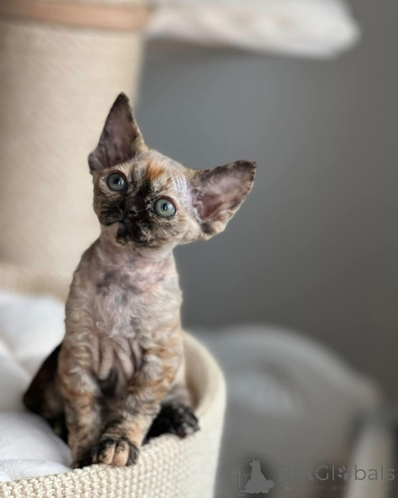 Dieses charmante Devon Rex-Kätzchen sucht ein liebevolles Zuhause. Es besticht durch sein weiches, lockiges Fell, seine großen, ausdrucksstarken Ohren und sein warmes, anhängliches Wesen. Devon Rex-Katzen sind intelligent, gesellig und unglaublich anhänglich und somit wunderbare Begleiter für Familien, Kinder und Singles.