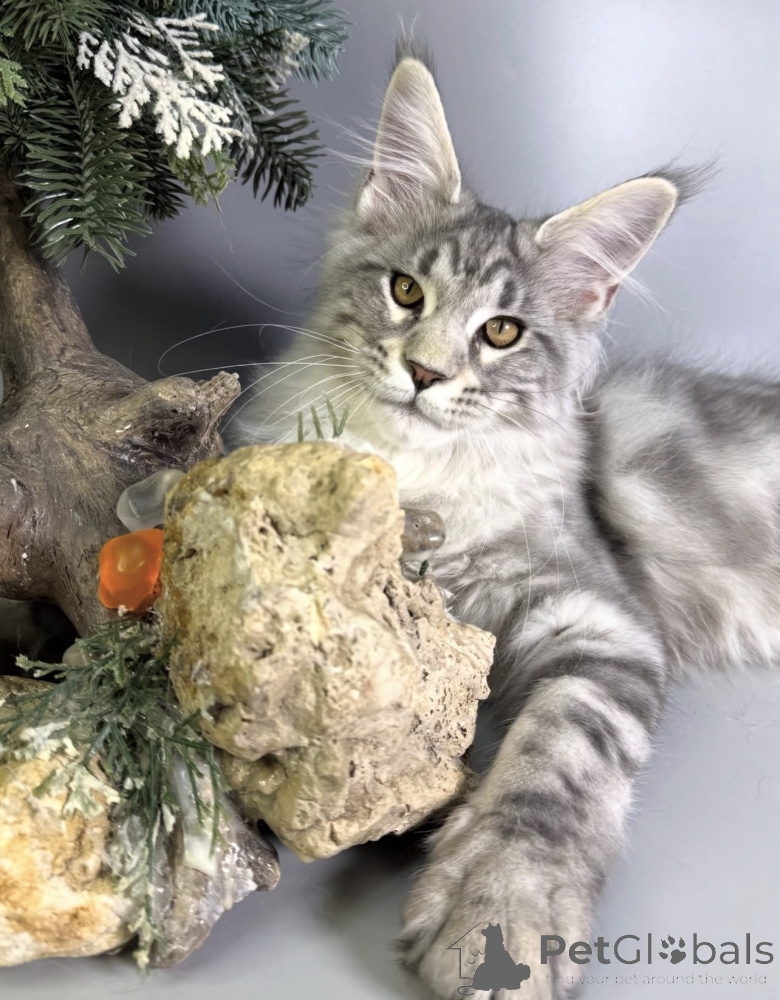 Dieses MaineCoonKätzchen ist ein Paradebeispiel für die liebevolle und ausgeglichene Natur der Rasse. Es liebt es, mit Menschen zu interagieren, Spielzeug zu jagen und sich für ruhige Momente an deine Seite zu kuscheln. Maine Coons sind bekannt für ihre Intelligenz, ihre Treue und ihre ruhige Art, die sie zu perfekten Familienmitgliedern macht. Mit seinem flauschigen Fell und den neugierigen Augen bringt dieses Kätzchen Wärme, Freude und Geborgenheit in jedes Zuhause.