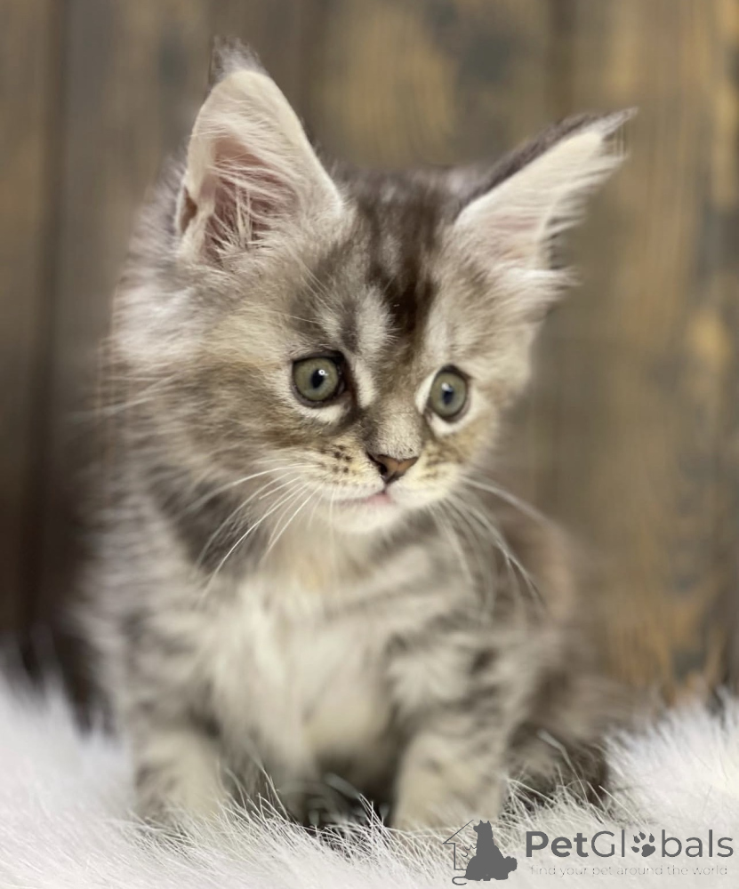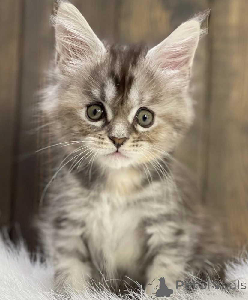 Dieses Kätzchen strahlt Ruhe und Harmonie aus. Es liebt sanfte Streicheleinheiten, beobachtet aufmerksam seine Umgebung und zeigt eine natürliche Gelassenheit. Maine Coons sind bekannt für ihre Intelligenz und ihre starke Bindung zu Menschen. Dieses Baby ist bestens sozialisiert, frisst zuverlässig und entwickelt sich prächtig. Mit seinem weichen Fell und seinem liebevollen Charakter wird es ein treuer Gefährte für viele Jahre.