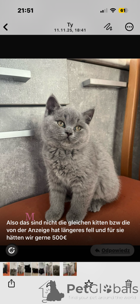 PetGlobals strongly recommends making payment/prepayment only after providing all necessary documents! (certificates, licenses, passport data, etc.). Make an online video call (Telegram, WhatsApp, Skype, Viber, etc.) with the seller and ask to show themselves and the pet - as a rule, scammers have nothing!