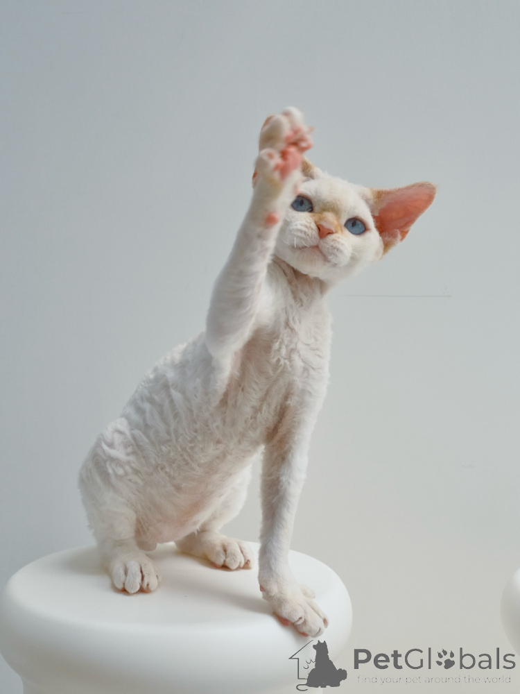 Dieses bezaubernde Devon Rex-Kätzchen sucht ein neues Zuhause. Es besticht durch sein weiches, lockiges Fell, seine großen, ausdrucksstarken Ohren und sein warmes, anhängliches Wesen. Devon Rex-Katzen sind intelligent, gesellig und unglaublich liebevoll und somit wunderbare Begleiter für Familien, Kinder und Singles.