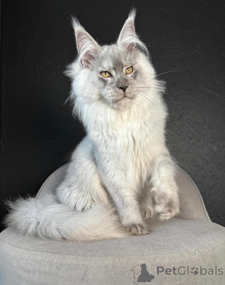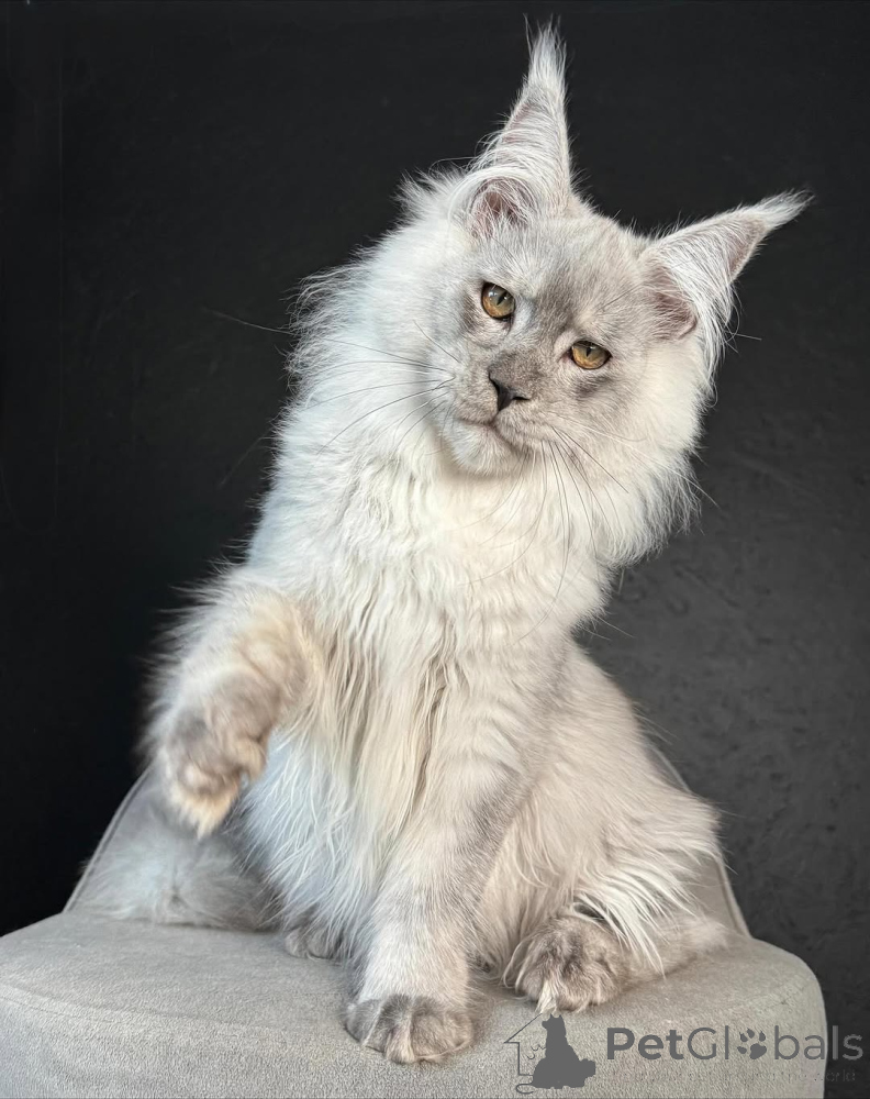 Luna is a dreamy Maine Coon princess with an enchanting aura. Her silvery coat glows softly in the light, and her bright, moonlike eyes reflect her playful spirit. She’s graceful and affectionate, often curling up in your lap for snuggles or brushing against your legs to say hello. Luna loves attention and knows how to charm anyone who meets her — she’s a natural-born star with a soft purr that melts hearts instantly. Despite her elegance, she has a mischievous side — she’ll tap your hand gently to ask for playtime or sneak off with a toy just to watch you laugh.