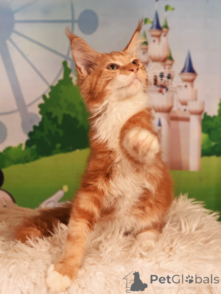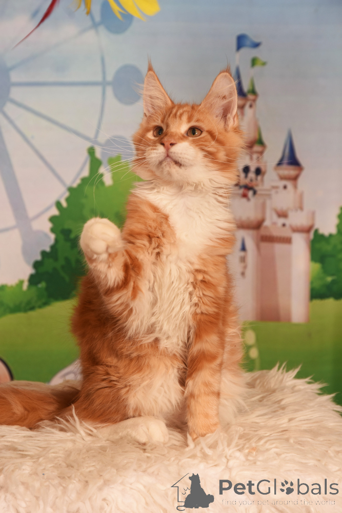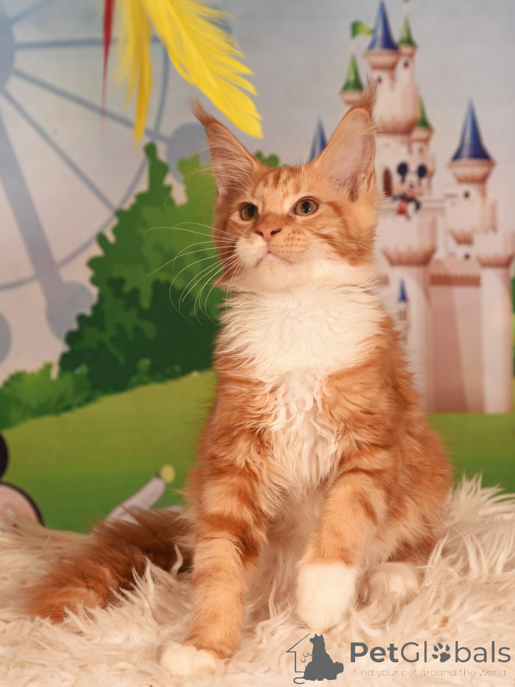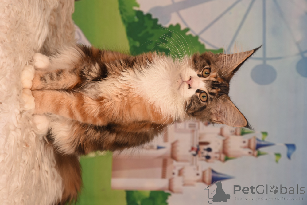 Maine Coon is quite a large, strong and hardy breed. His varied color, thick and fluffy wool makes him stand out against other feline animals.