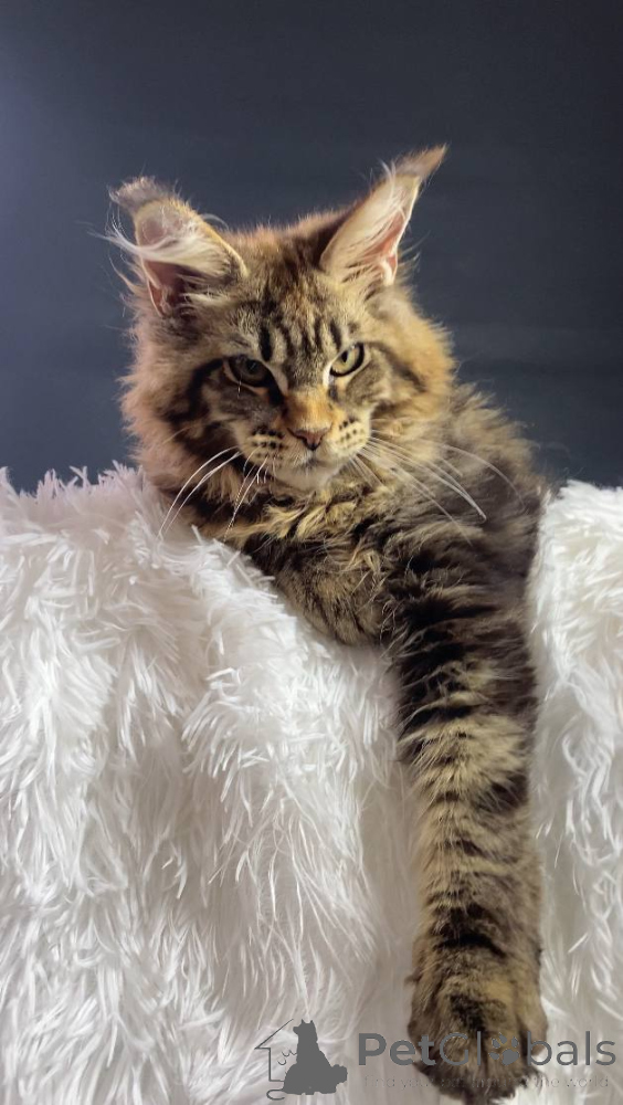 Maine Coon is quite a large, strong and hardy breed. His varied color, thick and fluffy wool makes him stand out against other feline animals.