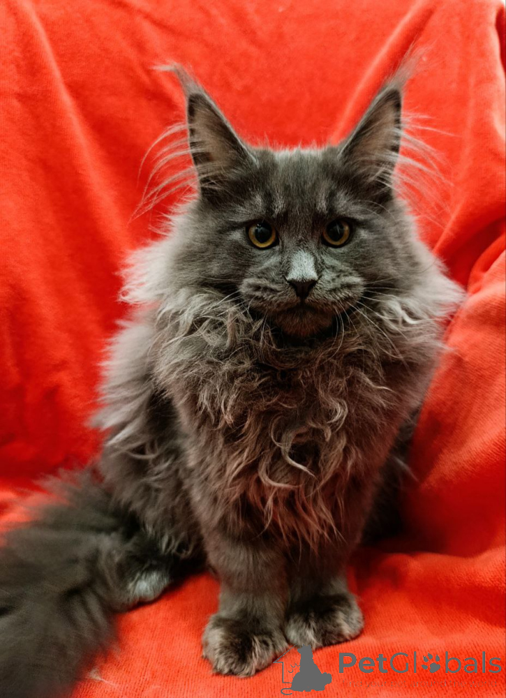 Maine Coon is quite a large, strong and hardy breed. His varied color, thick and fluffy wool makes him stand out against other feline animals.