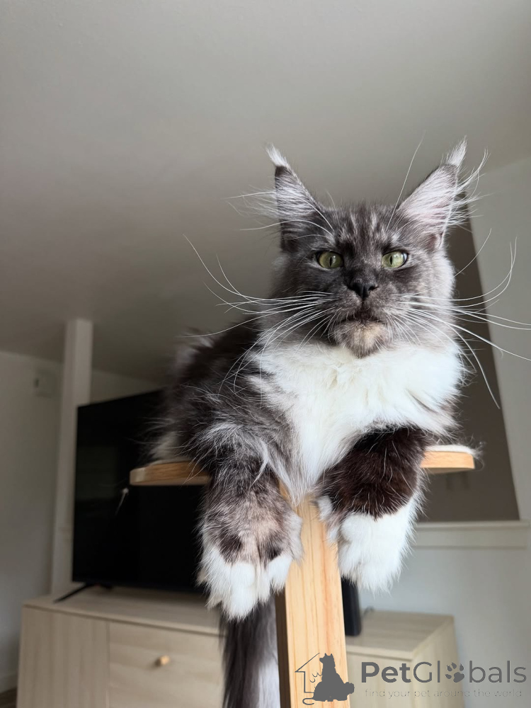 Maine Coon is quite a large, strong and hardy breed. His varied color, thick and fluffy wool makes him stand out against other feline animals.