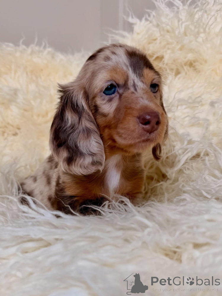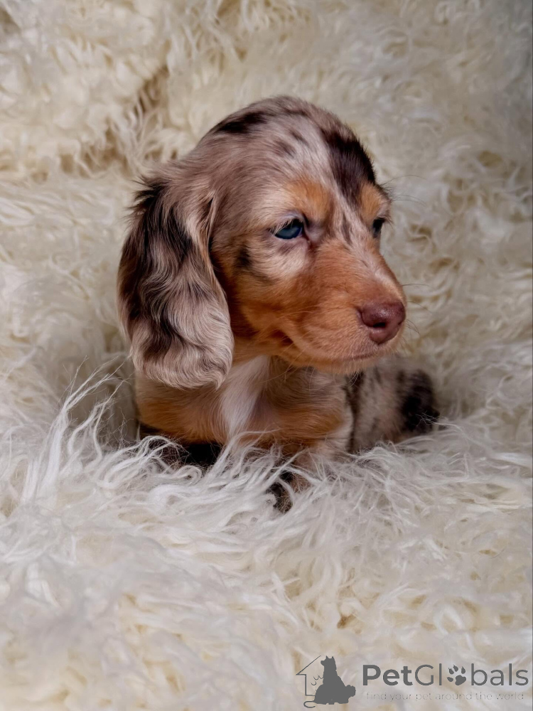 Hugo is a spirited wirehaired male Dachshund who brings laughter wherever he goes. His textured coat and expressive eyebrows give him a charming, almost comical look. He’s energetic, intelligent, and loves interactive play. Hugo is ideal for a family that enjoys an active, fun-loving puppy with lots of personality.