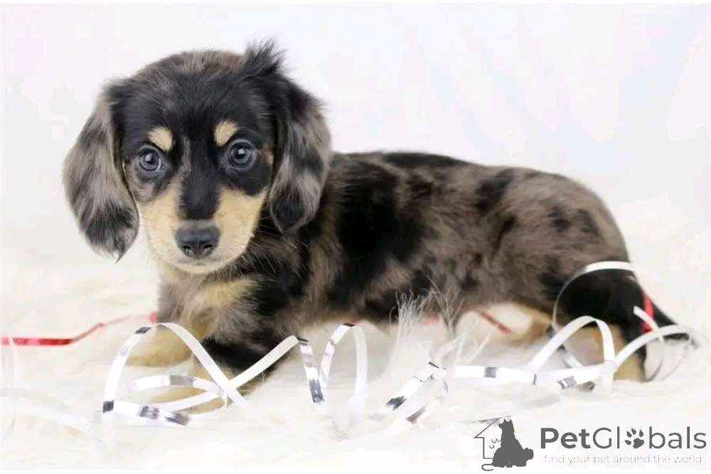 Hi, I'm Elvis! I'm a 6-week-old male Dachshund with a beautiful chocolate dapple coat, born on December 31. I'll be ready to go home to my forever family after February 26, once I'm grown enough to leave my litter. I'm AKC registered. I'm ready to be your furry sidekick and best friend contact whatsapp business 447450021323
