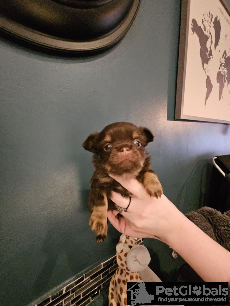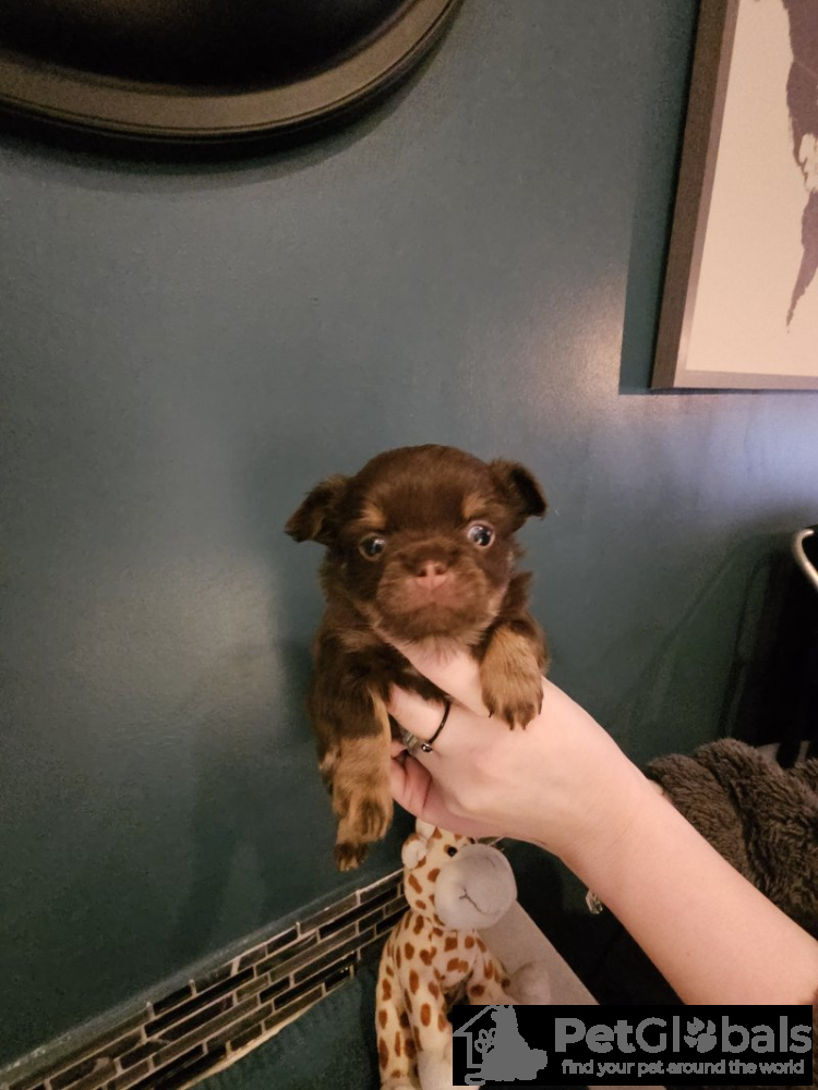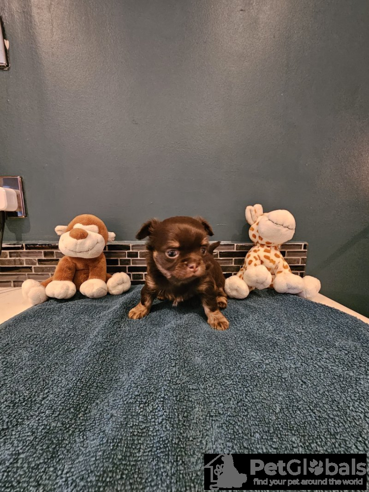 Hallo, wir haben einen Wurf von 3 schokoladenfarbenen langhaarigen Apfelkopf-Chihuahuas, die dreifarbig braun und weiß sind. Mama und Papa sind auf den Fotos zu sehen, die Welpen stammen aus einer hervorragenden Zuchtlinie und sind reinrassige Chihuahua-Welpen. Bei Fragen schreiben Sie mir bitte hier eine Nachricht.