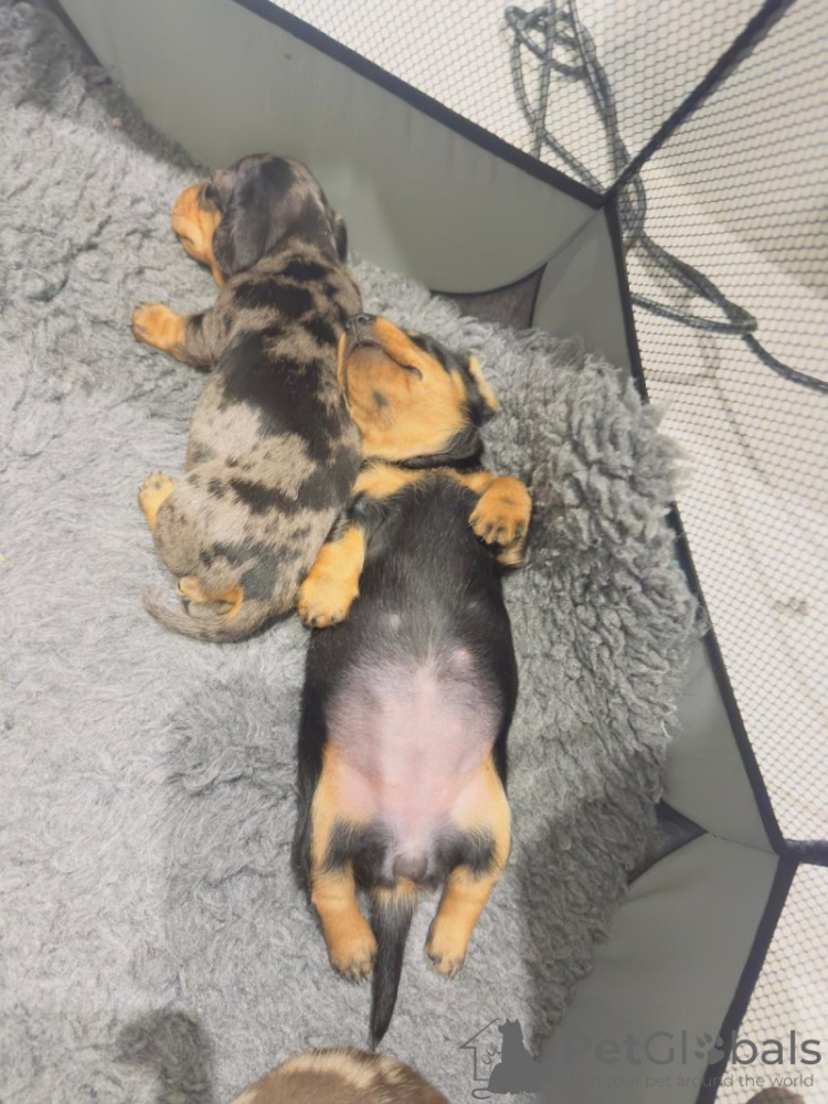 KIELBASA-DACHSHUNDE Sizzle begrüßte drei wunderschöne kurzhaarige Zwergdackel auf natürliche Weise auf der Welt. Alle Welpen sind KC-registriert und die Papiere können bei der Besichtigung eingesehen werden. Beide Eltern sind PRA Clear (gesundheitsgetestet) Sizzle ist unser Silberapfel-Familienhaustier, das mit Welpen zu sehen ist, und Papa war ein schokoladenbrauner Deckrüde. Alle Welpen wachsen im Haus auf und gewöhnen sich an alltägliche Geräusche. Sie werden gesundheitsgeprüft. Ich bekam einen Mikrochip und bekam die erste Impfung, als ich bereit war, für immer nach Hause zu gehen.