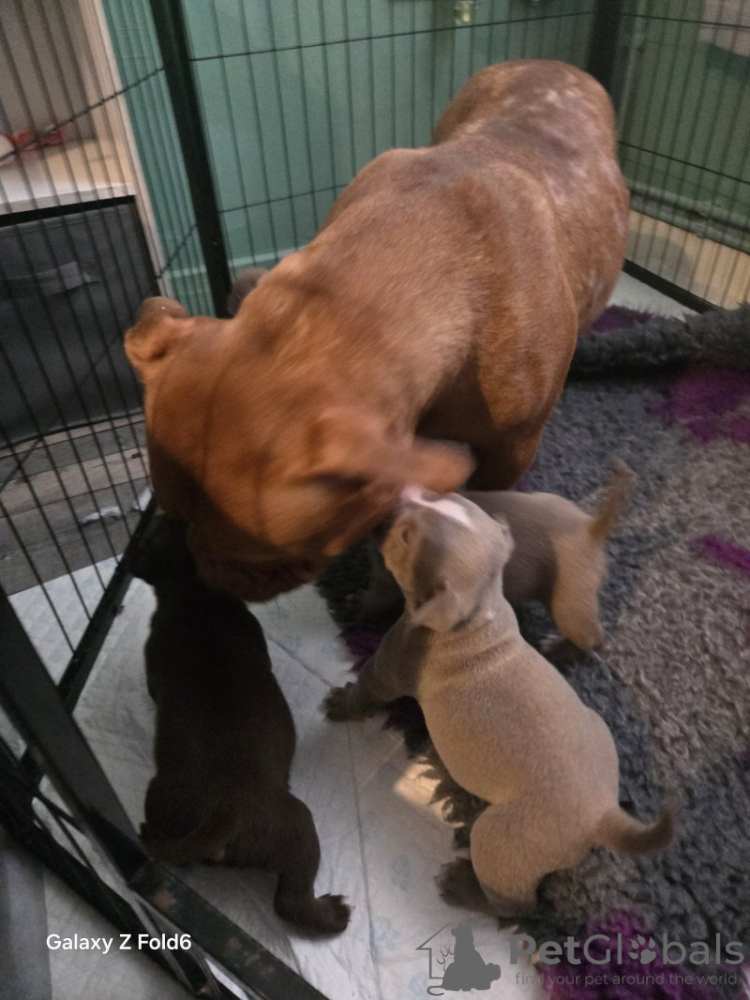 Wir haben noch 5 wunderschöne Welpen von 7 übrig. 4 Mädchen und 1 Junge. Mama ist ein Taschentyrann und Papa ist eine alte englische Bulldogge. Diese Welpen sind mit nur 3,5 Wochen bereits kleine Brocken und wachsen schnell. Wir haben 2 Schokoladenmädchen, 2 Fliedermädchen und 1 Fliederjunge. Diese Welpen werden . Geboren am Weihnachtstag und wird am 19.02.2025 abreisebereit sein. Kommt geimpft und gechipt