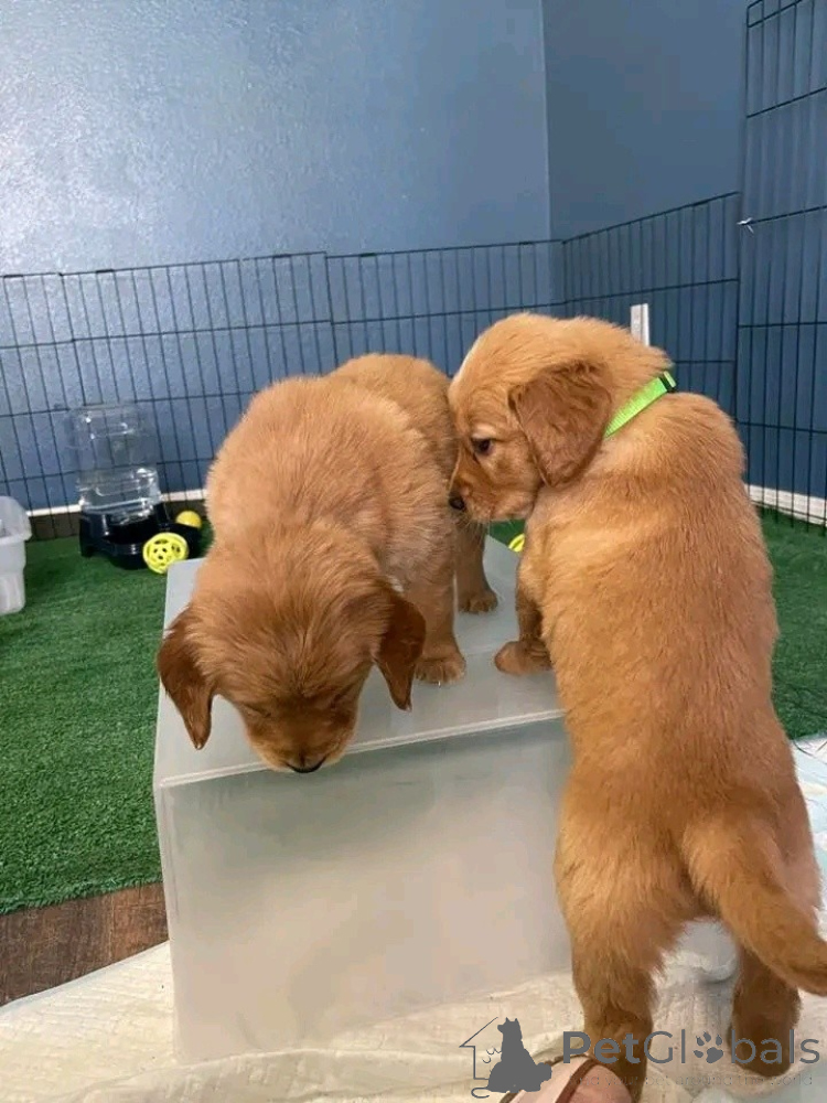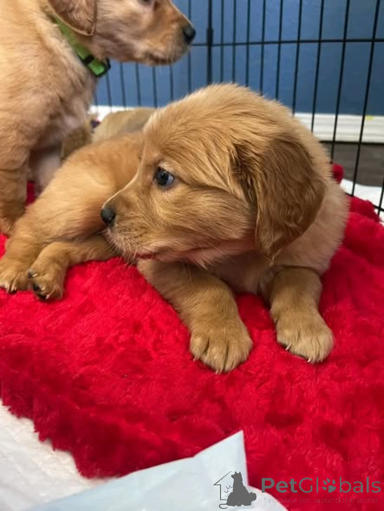 Mir hunn wonnerschéin Golden Retriever Welpen, déi prett sinn, hir éiweg Famill ze fannen! Si sinn aktuell geimpft, entwurmt a kommen mat all néidegen Gesondheetspabeieren fir Är Rou.