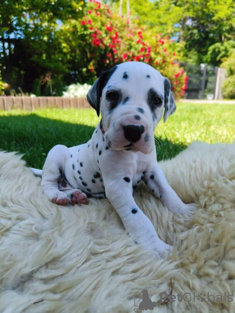Hello, I have three female Dalmatian puppies available. They are vaccinated, microchipped, and dewormed.