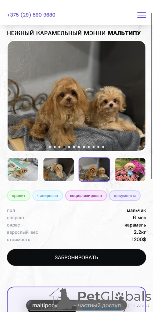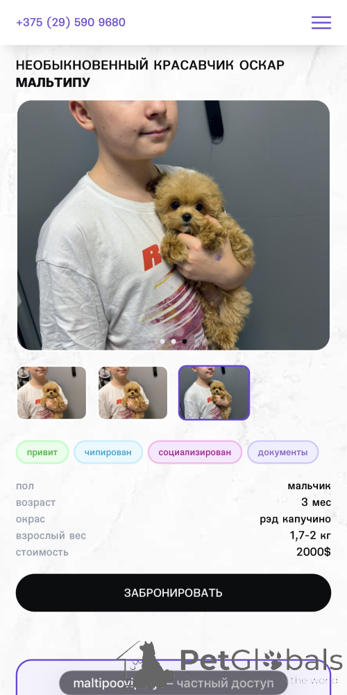 PetGlobals strongly recommends making payment/prepayment only after providing all necessary documents! (certificates, licenses, passport data, etc.). Make an online video call (Telegram, WhatsApp, Skype, Viber, etc.) with the seller and ask to show themselves and the pet - as a rule, scammers have nothing!