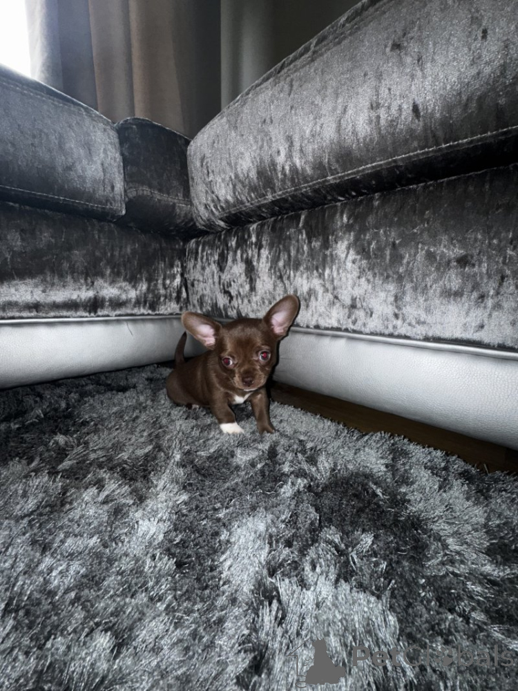 Ich begrüße meinen wunderschönen Wurf beim KC registrierter Chihuahuas. Mama und Papa sind meine eigenen und beide sind zusammen mit den Welpen hier zu sehen. Mama ist eine wunderschöne Lilac, wiegt 2,2 kg, hat einen apfelförmigen Kopf und ein absolut tolles Temperament, liebt alle, Kinder und andere Hunde, ein sehr freundliches, supersüßes Mädchen, das wir alle verehren. Papa ist ein schokoladenbrauner und lohfarbener Hund mit Blau, wiegt 2 kg, ein absolut umwerfendes Exemplar der Rasse, hat einen apfelförmigen Kopf und perfekte, typgerechte Gesichtszüge. Er hat wieder ein unglaubliches Temperament, liebt alle, Kinder und andere Hunde, superfreundlich und charmant. Sie müssen hinschauen, um zu erkennen, wie klein Mama und Papa sind und wie klein die Welpen unweigerlich sein werden. Rüde Nummer 1, ein einfarbig schokoladenbrauner Rüde mit Blau, ist sehr verspielt und gesellig, ist absolut winzig, aber sein großer Charakter macht das sicher wett! Rüde Nummer 2 ist ein lilacfarbener Rüde, sehr schüchtern und scheu, liebt Kuscheln und Spielen, lässt Ihr Herz dahinschmelzen! Die weiblich-schokoladenbraune Hündin mit Blau ist super super frech, verspielt und freundlich und strotzt nur so vor Selbstvertrauen! Alle Welpen sind in einem familiären Umfeld mit anderen Hunden und Kindern gut sozialisiert. Sie brauchen ein liebevolles Zuhause. Ich verkaufe sie jedoch nur an Menschen, die ihnen meiner Meinung nach das bestmögliche Zuhause bieten, das sie verdienen. Sie werden mit Papieren und Mikrochips ausgestattet. Bei weiteren Fragen oder für weitere Informationen kontaktieren Sie uns gerne.