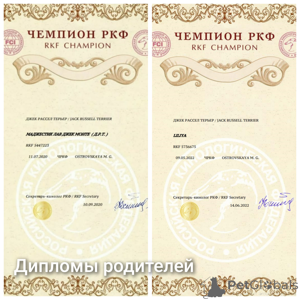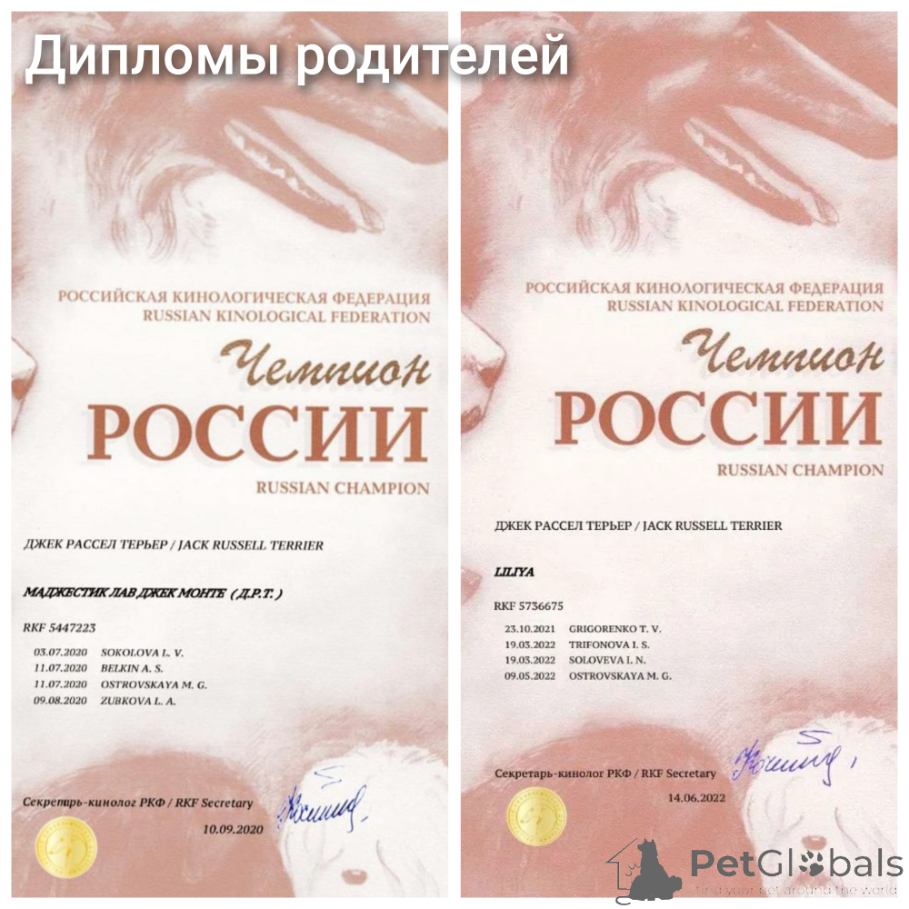 Dog's pedigree RKF (Association of Russian kennel)