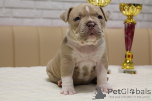 A chic American Bully boy is offered for sale. When selling, he will have the entire package of documents Abks passport vaccinations by age and chipped. Very good bloodlines and very beautiful and broad ancestors. We ship to any country.